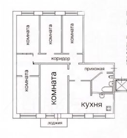 В квартире расположена большая прихожая, кухня-гостиная, большая комната, лоджия, коридор ,коридор, много комнат ,совмещенный сан/узел.