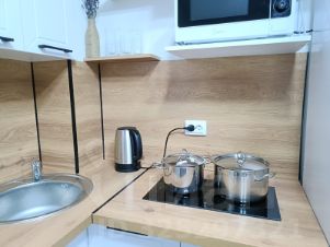 Есть вся необходимая техника: холодильник, стиральная машина, варочная поверхность. 4 спальных места: двуспальная кровать с ортопедическим матрасом и большой диван в кухне-гостиной.