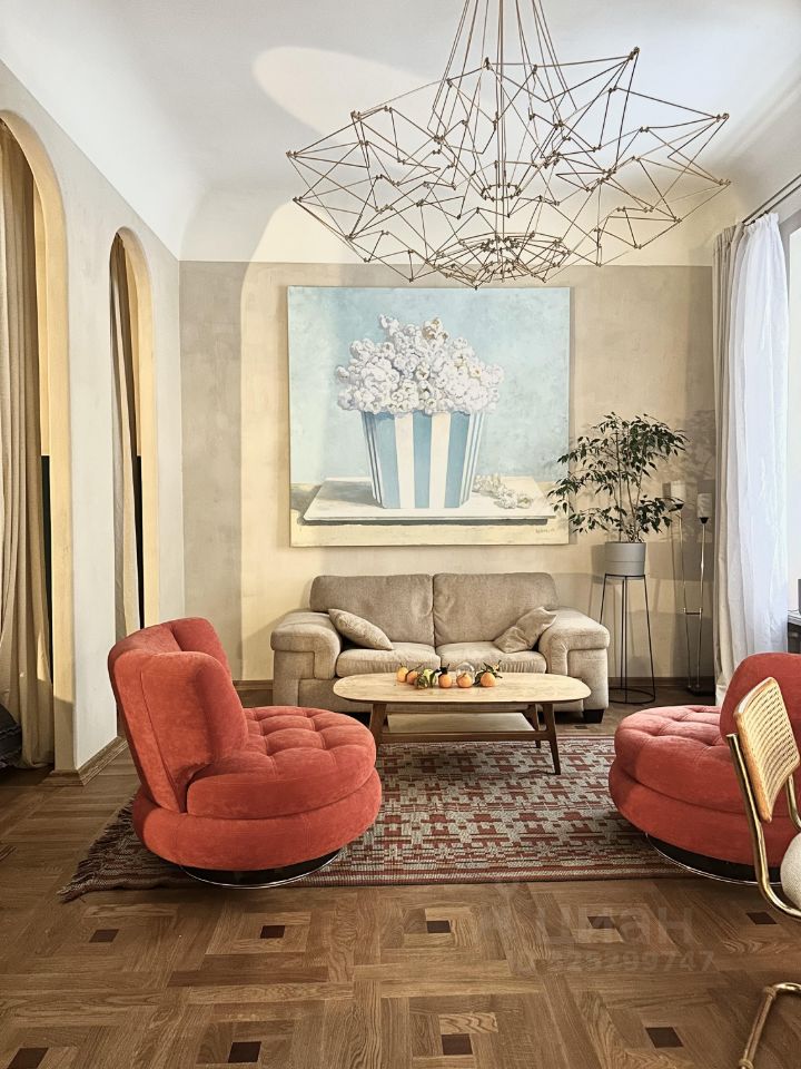 очень редкая винтажная мебель, пианино с отличным звучанием, большая кровать (матрас 180х200), есть дополнительное спальное место для ребенка, винтажные люстры, огромная дизайнерская люстра модного бренда Бежко, дубовый паркет с рисунком из красного дерева, большая вместительная гардеробная, уютная кухня, оснащенная качественной техникой.