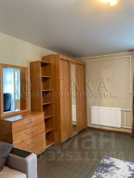 В комнате- раскладной 2-х спальный диван, комод, зеркало, 3-х дверный шкаф-купе, стеллаж, журнальный столик, телевизор, рабочий стол и офисное кресло, лампа настольная, ковер напольный.