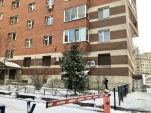 Во дворе , возле дома закрытая парковка со шлагбаумом.