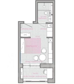 Комнату-трансформер вы можете настроить под себя — кровать убирается в стену, стол складывается, стулья штабелируются. Современным дизайн-решениям сопутствуют технически отработанные инженерные — регулируемые тёплые полы, настраиваемое освещение, душевая со встроенным трапом и инсталляция Tece, ручной душ на 3 режима Villeroy&Boch, встроенная в нише кухня с холодильником с морозильной камерой и микроволновая печь Gorenje с функцией гриль и различными режимами, индукционная варочная панель.