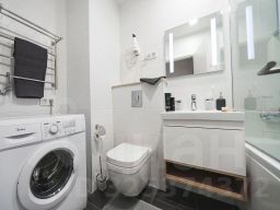 - В ванной комнате установлена сантехника высокого европейского качества и полноценная ванна. Также в номере есть стиральная машина, сушилка для белья, утюг и гладильная доска.