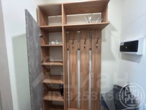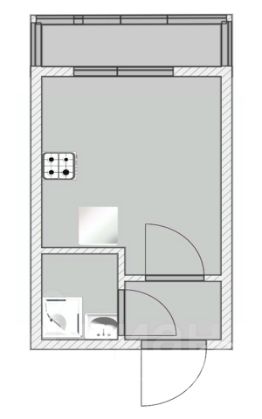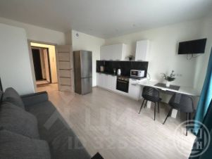 Студия расположена на последнем этаже восьмиэтажного дома. Квартира сдается с укомплектованной кухней: холодильник, плита, духовка, электрический чайник, микроволновка.