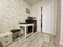 Комната светлая, чистая, в хорошем состоянии, с аккуратным современным ремонтом. На полу качественное напольное покрытие под дерево, стены оформлены в светлых спокойных тонах, за счёт чего пространство выглядит просторно и уютно.