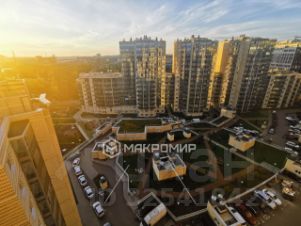 Квартира имеет комфортную просторную планировку - с большой кухней-гостиной, гардеробной-кладовой и восьмиметровым балконом! Вид из окон кухни и спальни на ст. метро Ладожская.