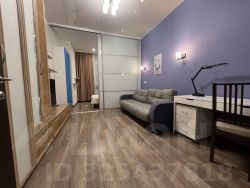 Комната зонирована раздвижной перегородкой на две: спальню и гостиную.