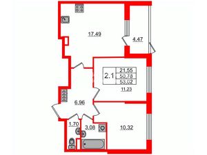 Просторная квартира 50.1 m2 имеет удобную планировку: