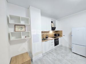 - Уютная кухня-гостинная с выходом на остеклённую лоджию 17.49 m2, со встроенной кухней и бытовой техникой, ортопедическим диваном, комодом и телевизором;