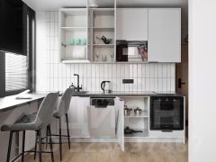 Кухонная зона полностью оборудована: