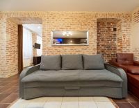 Общий метраж 60 кв.м. В Вашем распоряжении - просторная кухня-гостиная 25 кв.м и спальня 20 кв.м с гардеробной комнатой. Современная, уютная квартира с новым интересным ремонтом и полным оснащением для Вашего комфорта, в наличии - ЖК-телевизор, аудиоцентр, холодильник, газовая плита с духовкой, микроволновая печь, электрочайник, стиральная машина, фен, утюг с гладильной доской, сушилка, кухонные, постельные, туалетные принадлежности.