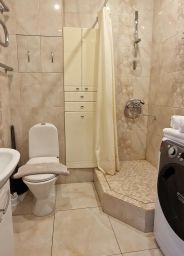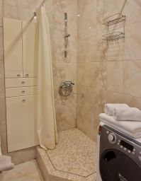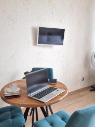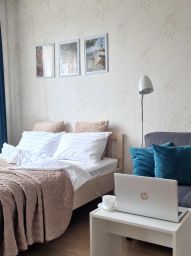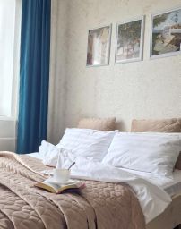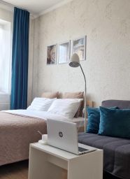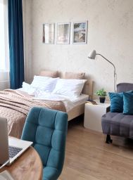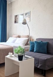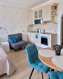 В апартаментах возможно размещение 3 человек. Спальные места: двуспальная кровать, раскладное кресло. Кухня оборудована необходимой посудой и техникой: электрическая плита, холодильник, чайник, капсульная кофеварка, микроволновка. К услугам гостей также Wi-F, телевизор, стиральная машина, постельное белье, полотенца, фен, утюг с гладильной доской, сушилка для одежды.