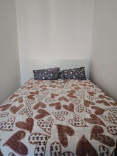 Светлая комната 16 м² полностью укомплектована: раздвижная евротахта, двуспальная кровать с ортопедическим матрасом, рабочий стол и вместительная система хранения. Мебель IKEA — аккуратная, стильная и практичная.