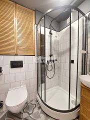 Отдельным преимуществом является большая комната, оформленная как гардеробная, которую при необходимости легко трансформировать в кабинет или детскую. Санузел совмещенный.