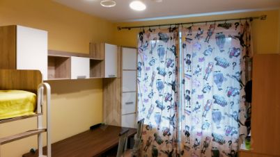 Кухня-гостиная полностью укомплектована и оборудована вместительным гарнитуром с антресолью, варочной поверхностью, духовкой, СВЧ-печью, вытяжкой, телевизором, посудомоечной машиной, полноразмерным холодильником, раскладывающимся диваном, обеденным и барным столом. В первой спальне, с выходом на застеклённую панорамную лоджию с видом на парк им. Бабушкина, вы найдёте удобную двуспальную кровать шириной 180 см. Вторая жилая комната (детская) с двухъярусной кроватью с ящиками для хранения и большим рабочим столом с подсветкой. В коридоре установлена прихожая. По всей квартире покрытие пола - ламинат, только в санузле - кафельная плитка со встроенным подогревом пола. В ванной установлена стиральная машина-автомат BOSCH.