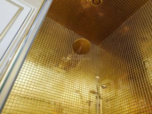 Мраморные полы, лепнина ручной работы и золотая отделка придают помещению исключительную роскошь и элегантность.