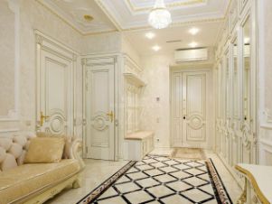 Интерьер квартиры выполнен по индивидуальному проекту, с использованием дорогостоящих материалов и передовых технологий.