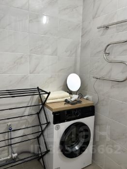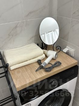 В санузеле полноценная ванна, гигиенические принадлежности, полотенца, фен, стиральная машина и сушилка для белья.