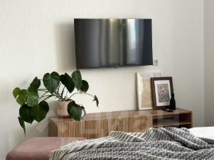 В квартире есть спальная зона с удобной кроватью 140 см. Телевизор смарт.