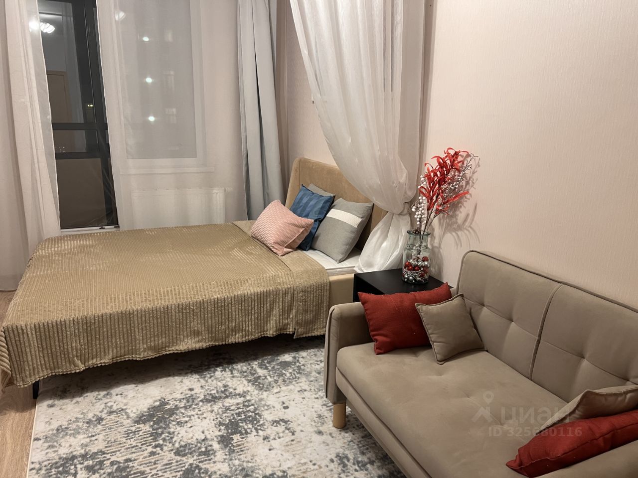 В комнате просторный шкаф, кровать с удобным матрасом и раскладывающийся диван, где можно разместить гостя на ночь. Просторная кухня площадью 12 м² оснащена современной техникой, включая холодильник, стиральную и посудомоечную машины. В коридоре шкаф и комод для хранения вещей. Выход на остекленный балкон и с комнаты, и с кухни.