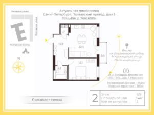 Представляем вам светлую, тихую, однокомнатную квартиру на 6 этаже, общей площадью 54 кв.м. в жилом комплексе Дом у Невского, окна которого смотрят на Феодоровский собор, крыши домов и Миргородскую улицу.