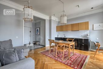 В квартире выполнен дизайнерский ремонт в спокойных, нейтральных тонах с применением дорогостоящих материалов по проекту двух дизайнерских компаний Chi Design и Reroom.