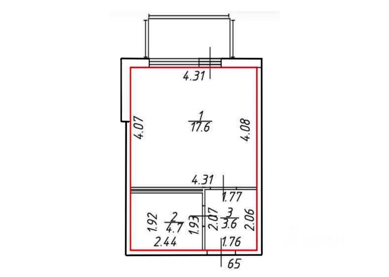 Жилая комната 17.6 кв.м. с оборудованной зоной кухни и спальной зоной с выходом на балкон. Прихожая 3.6 кв.м. Совмещенный санузел 4.7 кв.м. с современной сантехникой. Потолки 2.8 м. Выполнен евроремонт. Вид из окна на улицу.