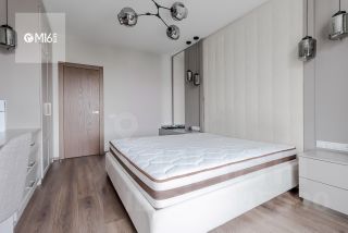 Выполнена дизайнерская отделка в светлых оттенках с использованием качественных материалов и встроенной техники — есть все необходимое для жизни