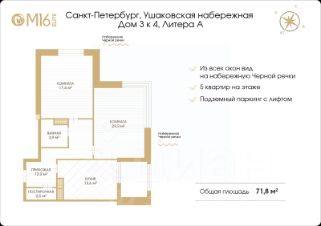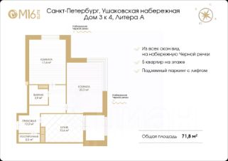 Из всех окон а также лоджии открывается захватывающий вид на набережную Черной речки.