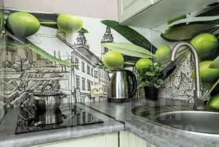 Кухонная зона: плита, холодильник, чайник, микроволновая печь,