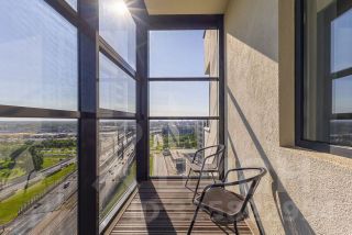 Сдается шикарный однокомнатный с панорамными и огромной лоджией видом на город апартамент в ЖК Салют на 18 этаже.