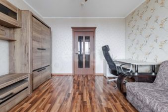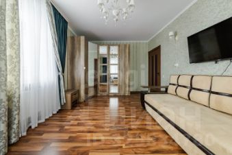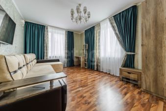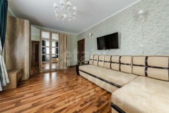 - Первая просторная комната с раскладным диваном, широкоформатным телевизором, вместительным шкафом для хранения, туалетным столиком. Много света в комнате, два окна.