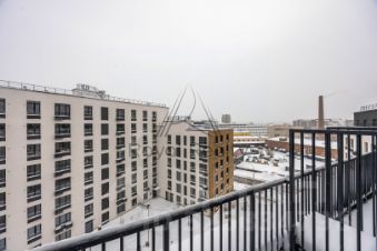 20 м² с собственной террасой, 8 этаж (последний), без соседей сверху, окна выходят в тихий закрытый двор. Солнечная сторона — в квартире всегда много естественного света (фото сделаны в январе).