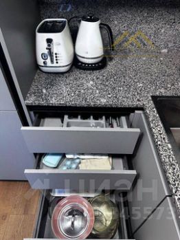- Просторная кухня-гостиная с большой каменной столешницей и встроенной современной техникой