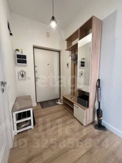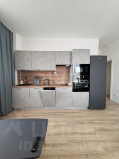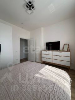 Кухня оборудована техникой (духовой шкаф, варочная панель, вытяжка, посудомоечная машина) и вместительными шкафами до потолка. В спальнях установлены двуспальная кровать и детская кровать с ортопедическими матрасами, в гостиной — раскладной диван на двоих.