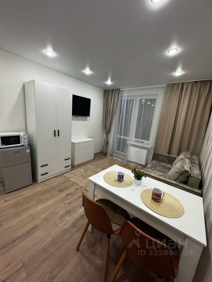 Общая площадь 22 кв.м., 14 этаж из 16, в квартире никто не жил, новый евроремонт, новая техника и мебель, квартира теплая, очень уютная, в светлых тонах, большие окна, есть все необходимое для жизни, хороший просторный балкон, что позволяет наслаждаться красивым видом на город даже зимой.
