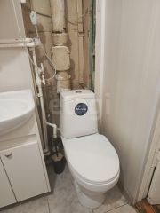 Санузел совмещенный, обновленный, с установленной новой белой ванной.