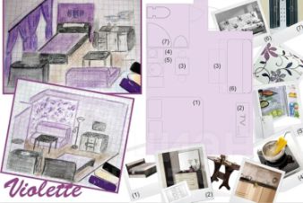 Уютная студия в фиолетовых тонах, оформленная на тему Орхидеи.