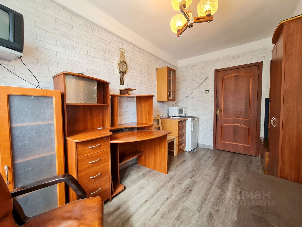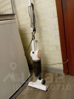 Комната в хорошем состоянии, чистая и аккуратная, укомплектована всей необходимой мебелью и бытовой техникой (в том числе личный холодильник, личный телевизор, личная микроволновая печь, личный пылесос и общая стиральная машина). В качестве спального места используется раскладывающийся диван. Окно комнаты выходит во двор. Дверь комнаты закрывается на замок.