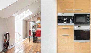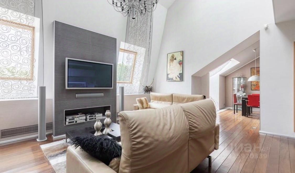 Общая площадь квартиры — 145 м²., расположена на двух этажах (4 этаж и мансардный). Межэтажная лестница с остеклением.