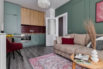 Стильная и уютная 1-комнатная квартира с продуманной планировкой и современным интерьером.