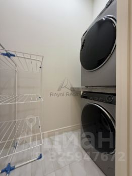 постирочная комната со стиральной и сушильной машинами.