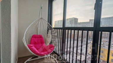 Есть огромный новый телевизор и встроенный трех дверный шкаф купе во всю стену. К комнате примыкает широкая лоджия.