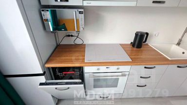 В Кухне есть выход на лоджию, отделанную вагонкой. Сама кухня так же оснащена всем необходимым. Есть Посудомойка! Хозяйки оценят, или хозяева) Плита с духовкой. Микроволновая печь. Полный комплект посуды и столовых приборов. Есть робот пылесос. Ванная оборудована стиральной машиной