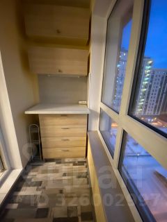 Полностью меблирована: кровать IKEA 2- спальная ( 140 см), современная мебель везде - кухонная зона, в прихожей, в санузле. Много мест для хранения . Прекрасная заново остекленная лоджия 4 метра .