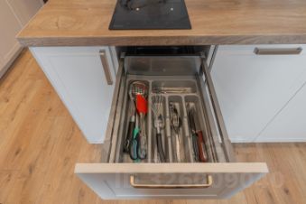 - -обеденная зона (большой холодильник, чайник, микроволновка, плита, столовая группа, посуда на 2 персоны, стол со стульями, посудомойка, духовка)