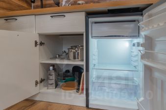 Спальня совмещена с кухонной и обеденной зоной.