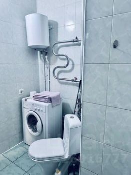 В ванной комнате полноценная ванная, полотенца, стиральная машина и водонагреватель.