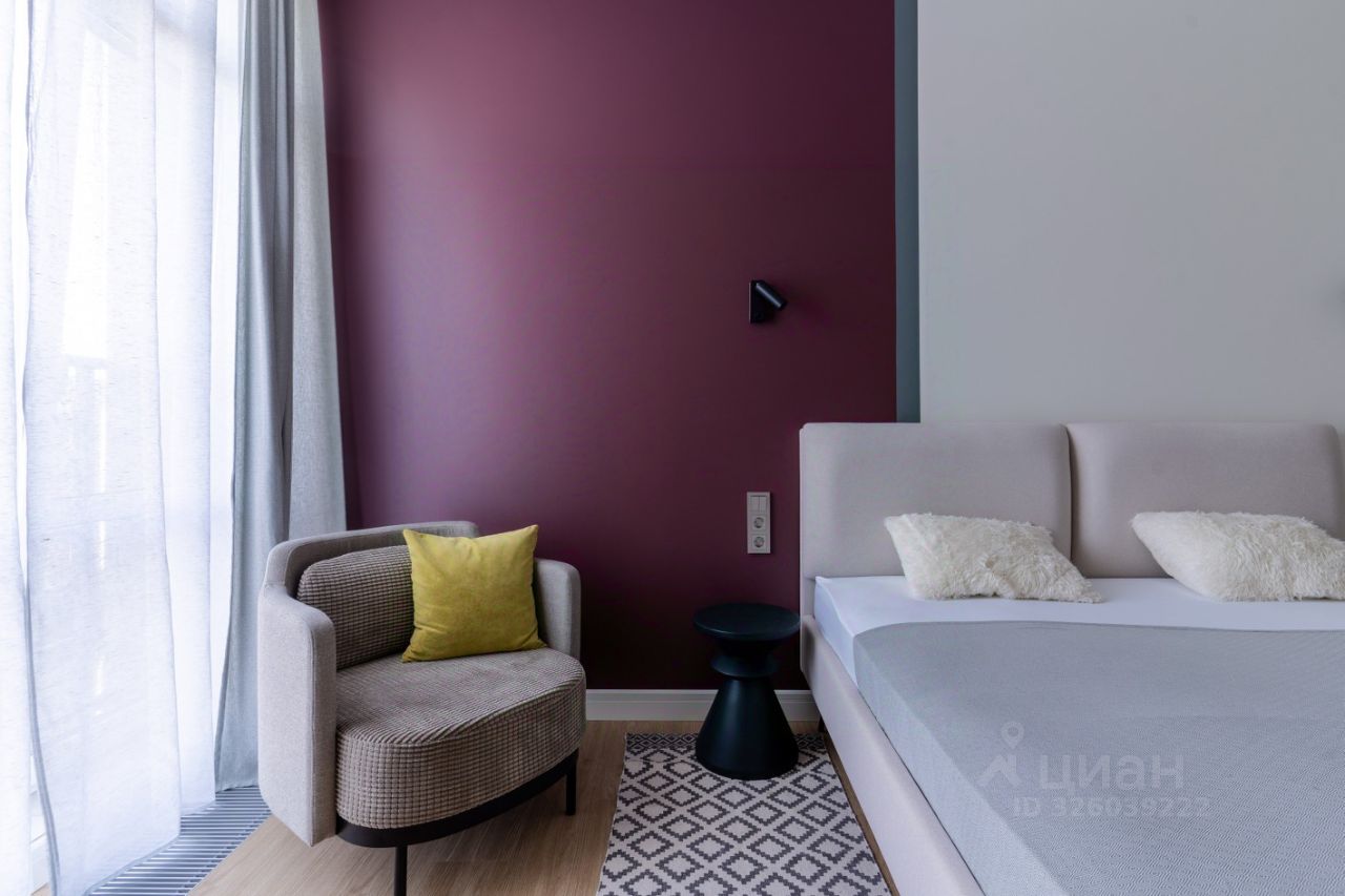 Планировка апартамента: кухня-гостиная с двумя панорамными окнами и выходом на балконе, спальня с гардеробной зоной, совмещенная ванная комната с душевой и хозяйственная комната. Апартаменты укомплектованы всей необходимой техникой, комфорт проживания продуман до мелочей.