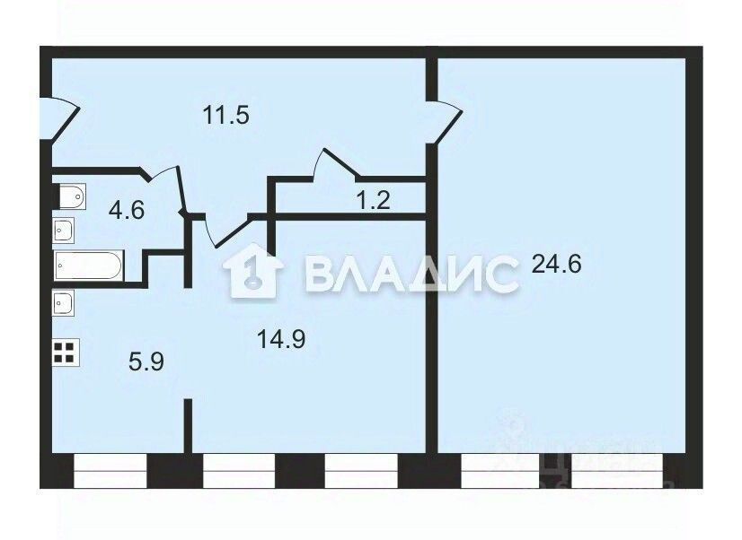 Квартира площадью 62,7 кв. м расположена на втором этаже пятиэтажного кирпичного дома по адресу: